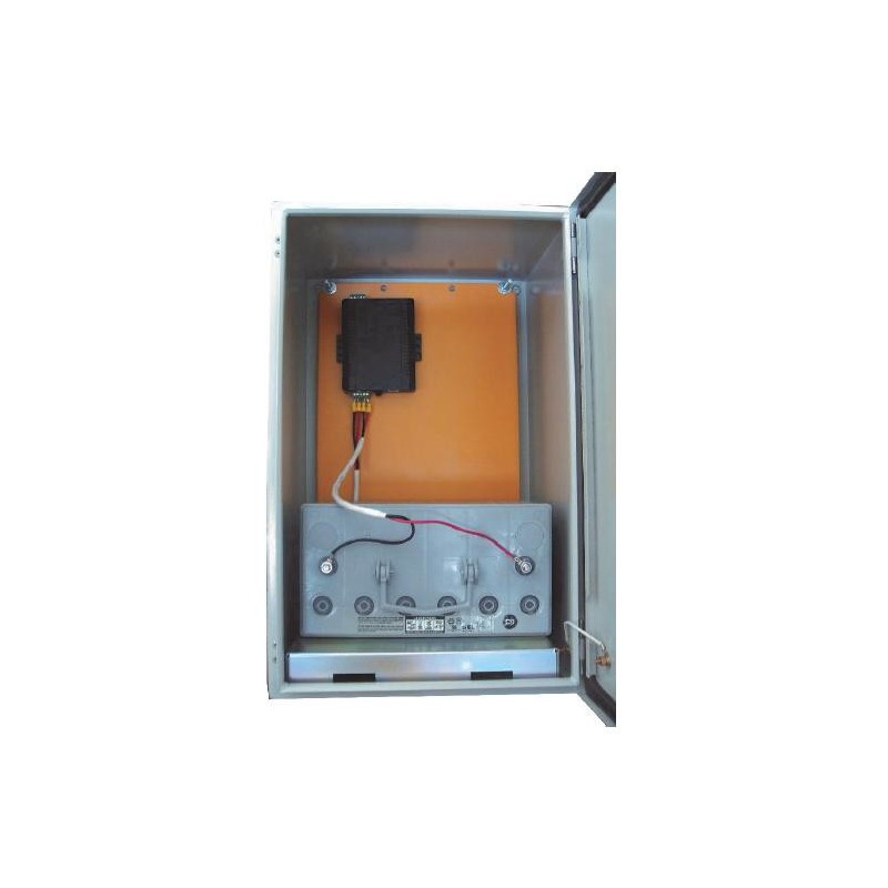 Anclaje equipos pared o poste con regulador y bateria de alto rendimiento GEL.